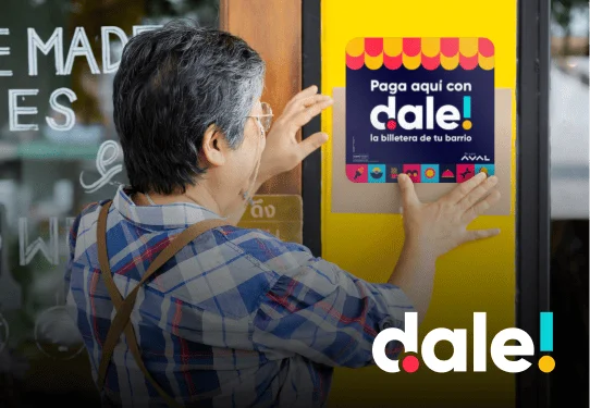 Dale! es la billetera digital gratuita de Grupo Aval que facilita el día a día de las personas al permitirles enviar, recibir y pagar dinero usando su número de celular.